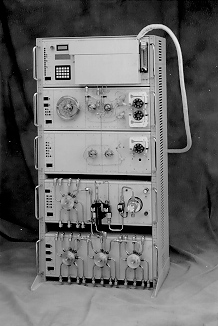 The photograph below illustrates an ASAP configured for automated sampling of 29 points using 0.25-inch stainless steel tubing. The A+RT purge-and-trap concentrator draws a precise volume of water (selectable from 0.2 to 10 milliliters) from the selected sample stream and prepares it for volatile organic compound (VOC) analysis using a gas chromatograph. The A+RT concentrator differs from the customary batch purging approach in that it uses a flow-through, countercurrent stripping cell.
