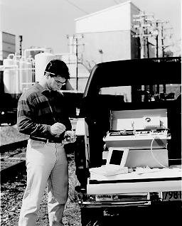The field-deployable HNU GC 311D portable gas chromatograph monitors a wide range of compound emissions from hazardous waste sites and other emissions sources before and during remediation (see figure below). It has an internal carrier gas supply, operates on 110-volt line power, is microprocessor-controlled, and is temperature programmable. An internal printer plots chromatograms and prints data. Data can also be reported to an external computer, which is connected through an RS-232 outlet.