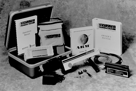 The instrument is composed of a control console connected to an ambient scanner with a cable. The basic MAP® system also includes a carry pack, rechargeable batteries, operator's manual, target metal standard, and a shipping case. The control console contains a 256-multichannel analyzer (MCA) with a storage capacity of 325 spectra and analyses. The control console weighs 7 pounds and the ambient scanner weighs about 2.5 pounds.