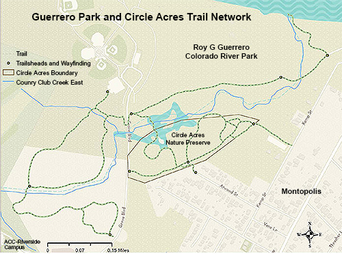 - Providing a platform for community education concerning sustainable land use and urban wildlife preservation. As current owner of the site, Ecology Action of Texas and its volunteer team provide tours of this former brownfield property. Circle Acres also offers hands-on experience in community-wide projects such as cleaning up and restoring upstream wetlands and extending nature trails in the adjacent Roy G. Guerrero Colorado River Metro Park. A portion of the extended trail system will connect to the Circle Acres Nature Preserve.